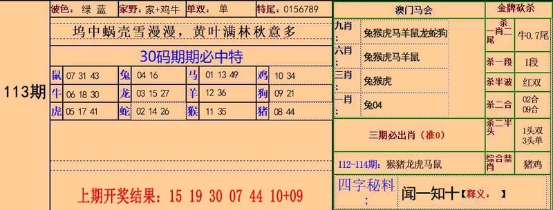 113期30码中特图