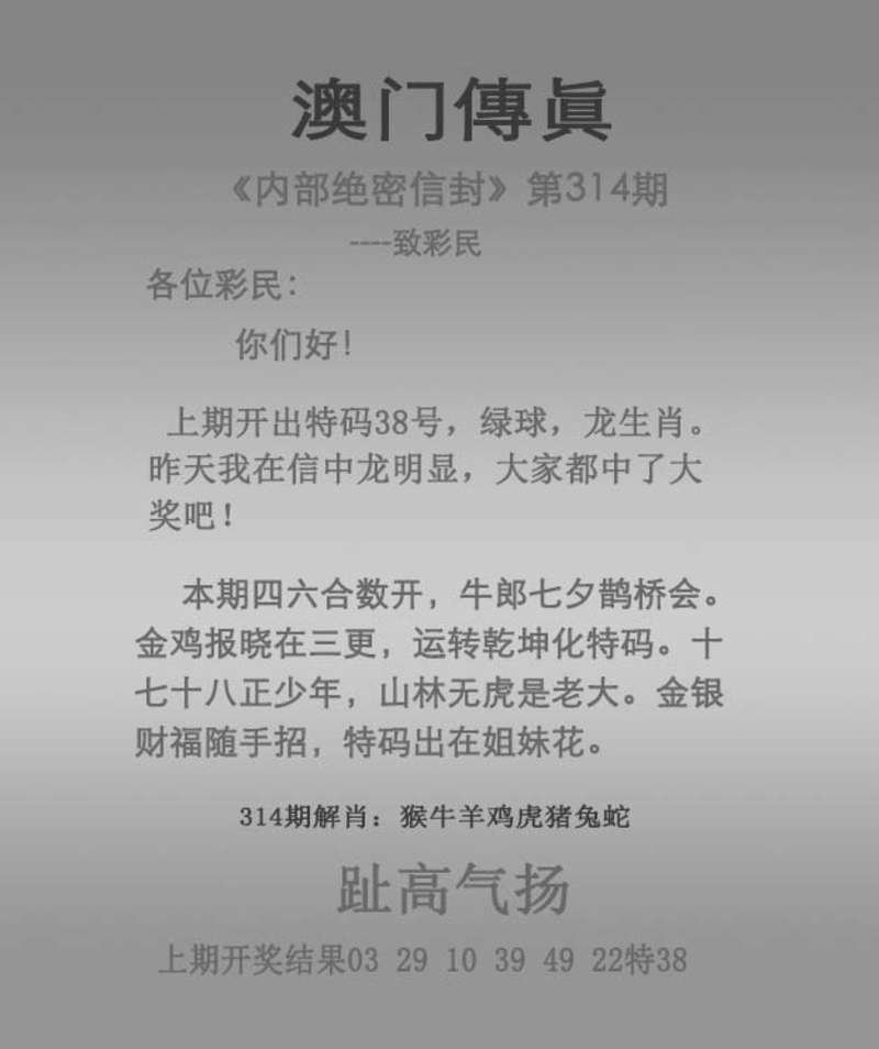 314期澳门传真图
