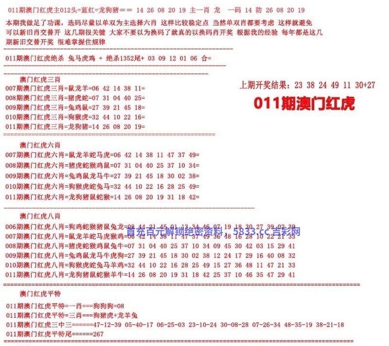 011期澳门红虎图