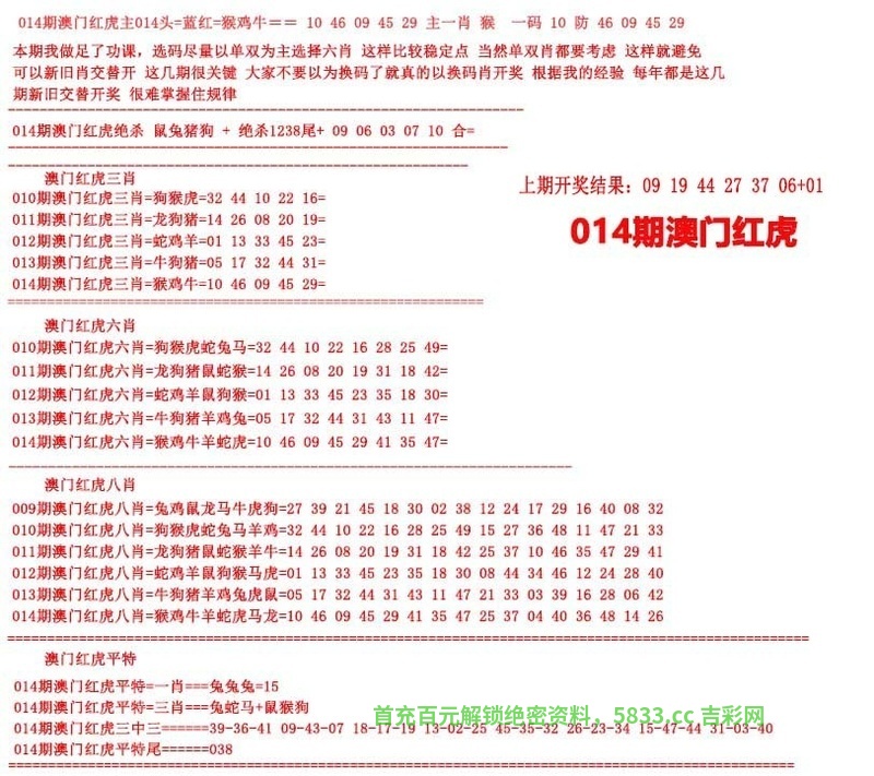 014期澳门红虎图