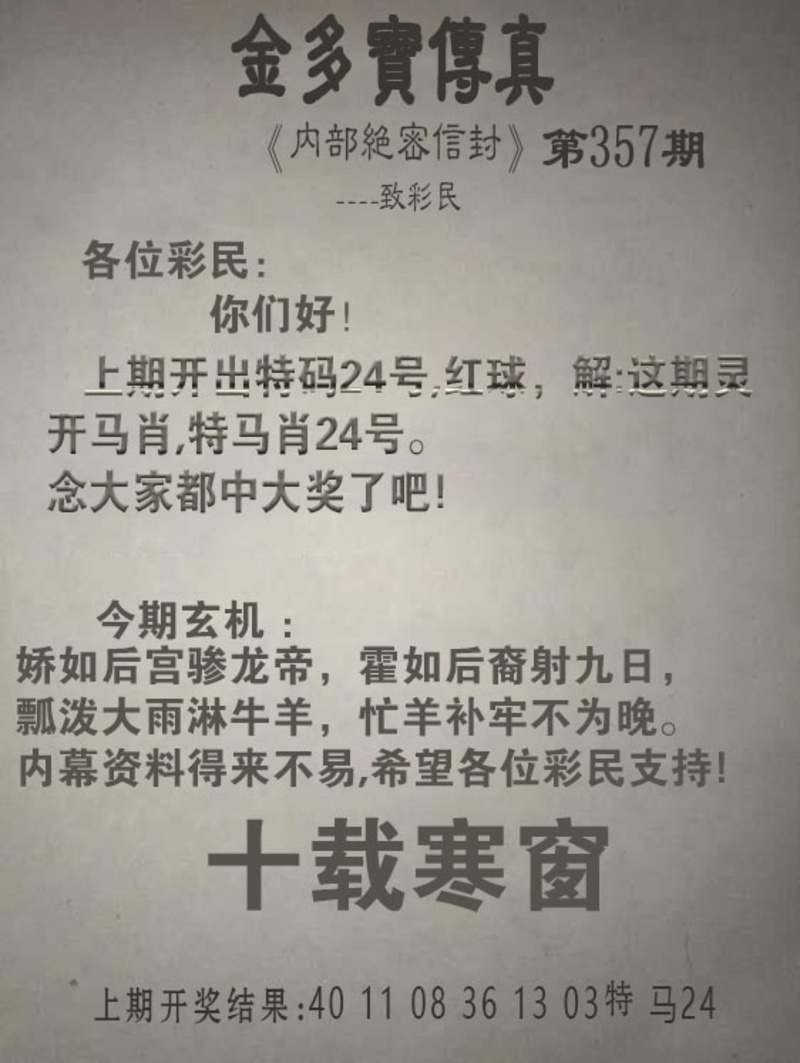 357期金多宝传真