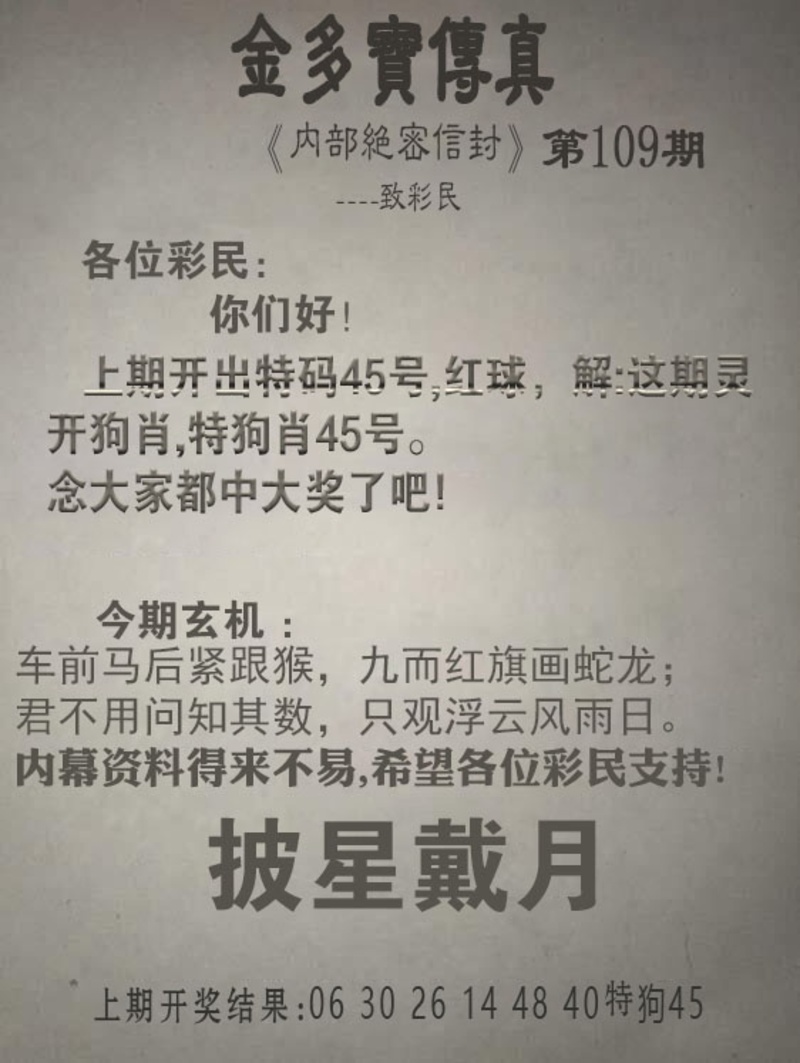 109期金多宝传真