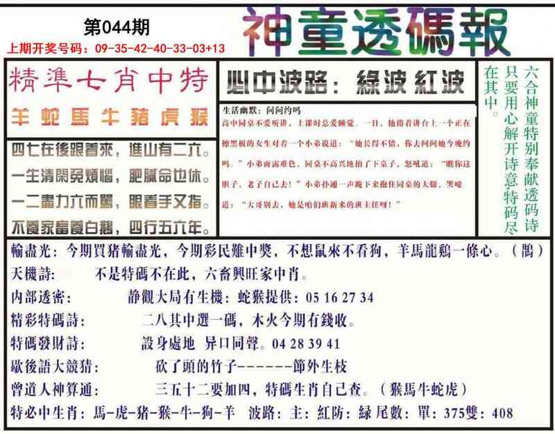 044期神童透码报