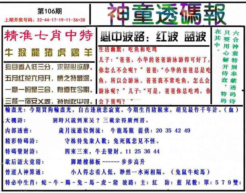 106期神童透码报