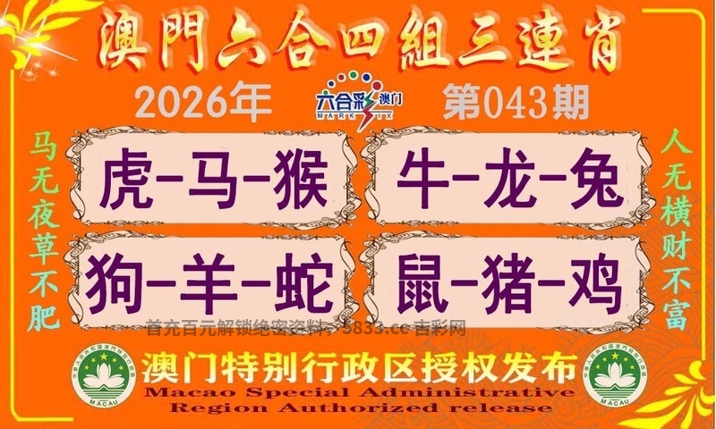 043期四组三连肖
