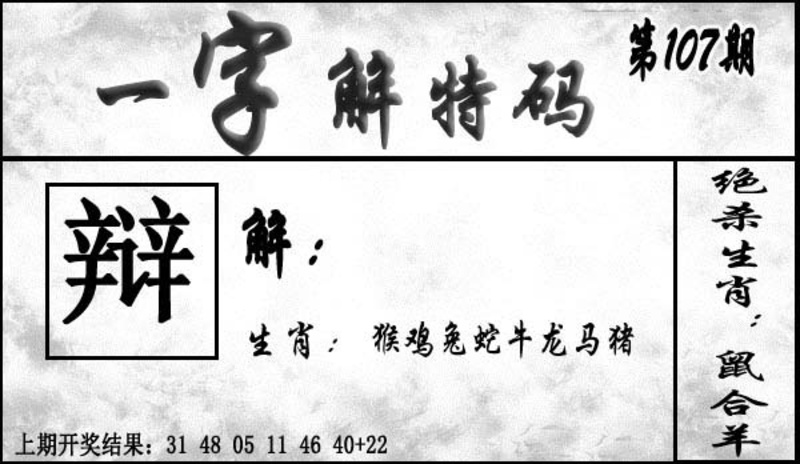 107期一字解特码