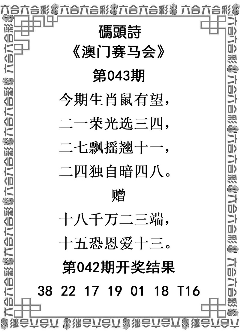 043期澳门赛马会
