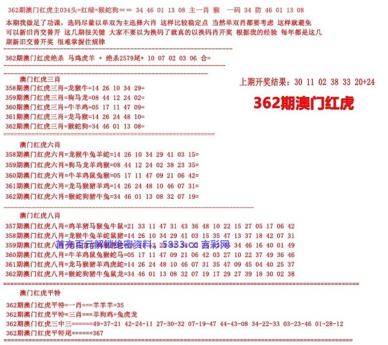 362期澳门红虎图