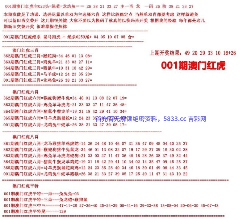 001期澳门红虎图
