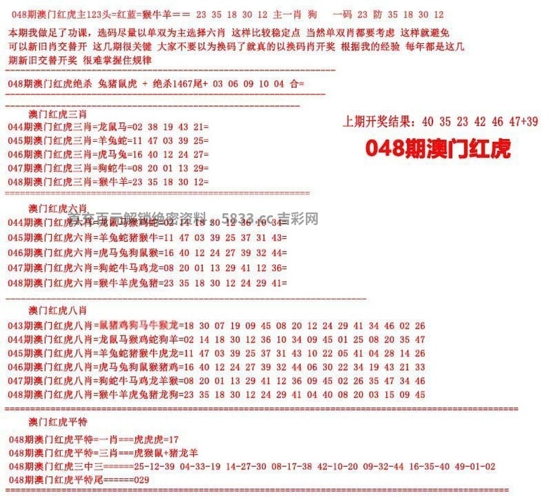 048期澳门红虎图