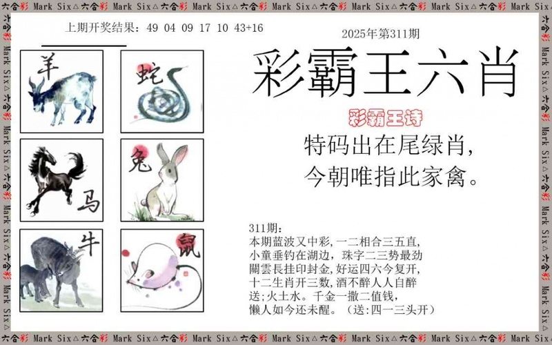 311期彩霸王六肖