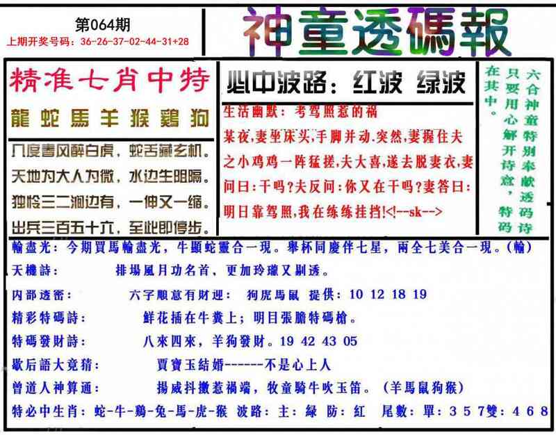 064期神童透码报