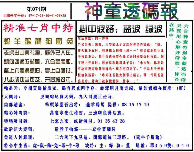071期神童透码报
