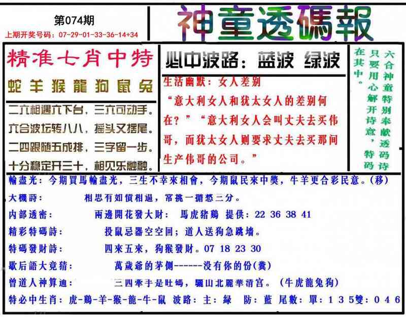 074期神童透码报