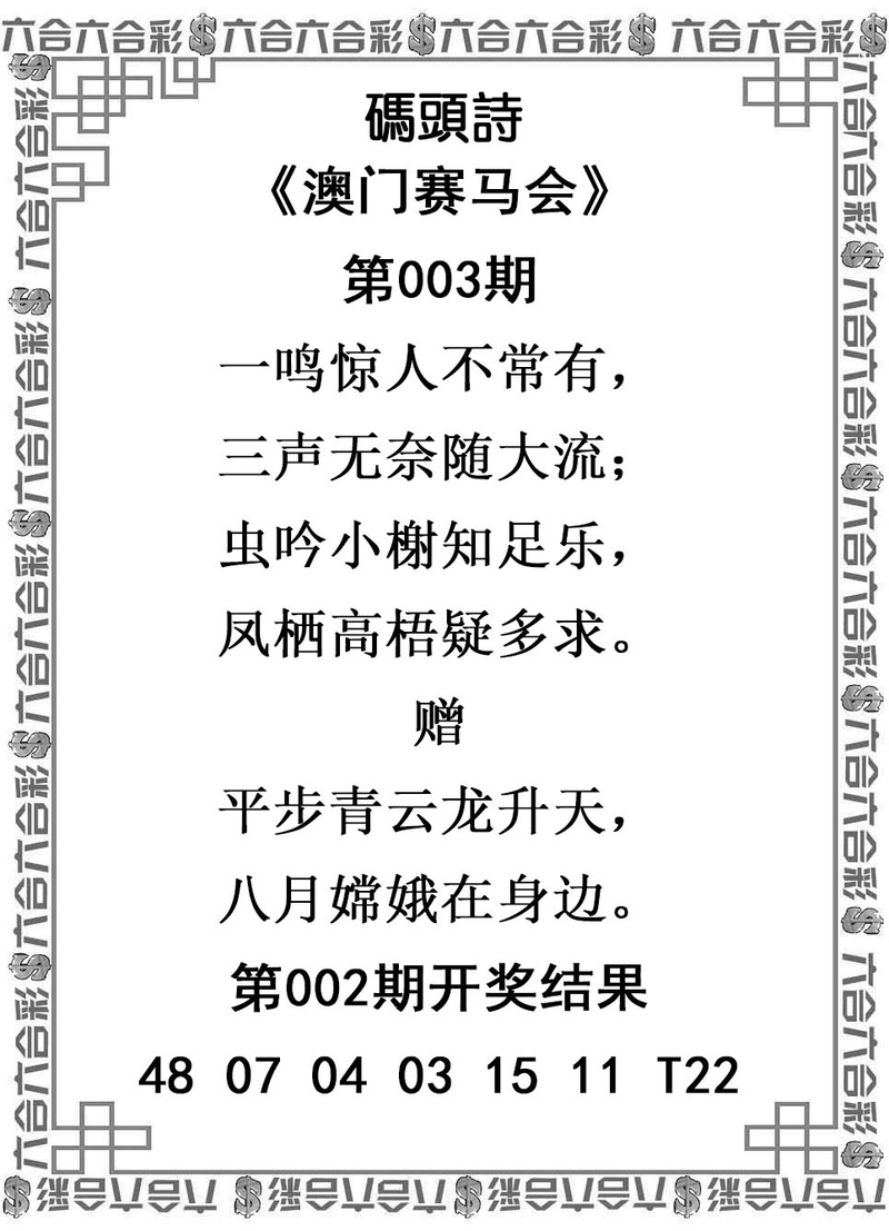 003期澳门赛马会
