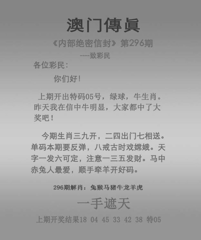 296期澳门传真图