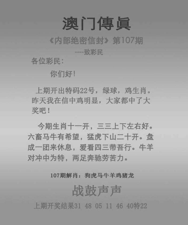 107期澳门传真图