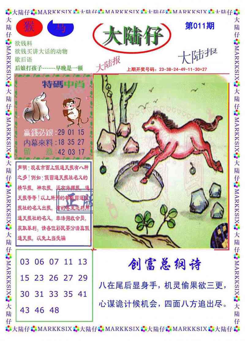 011期澳门大陆仔