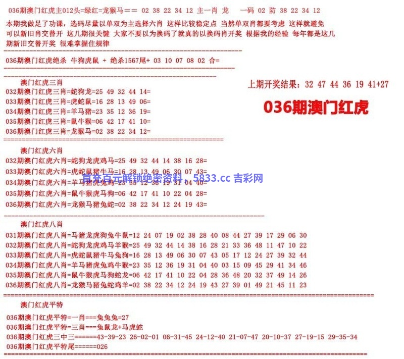 036期澳门红虎图