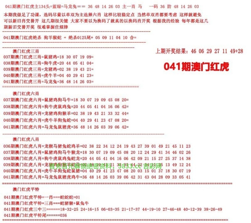 041期澳门红虎图