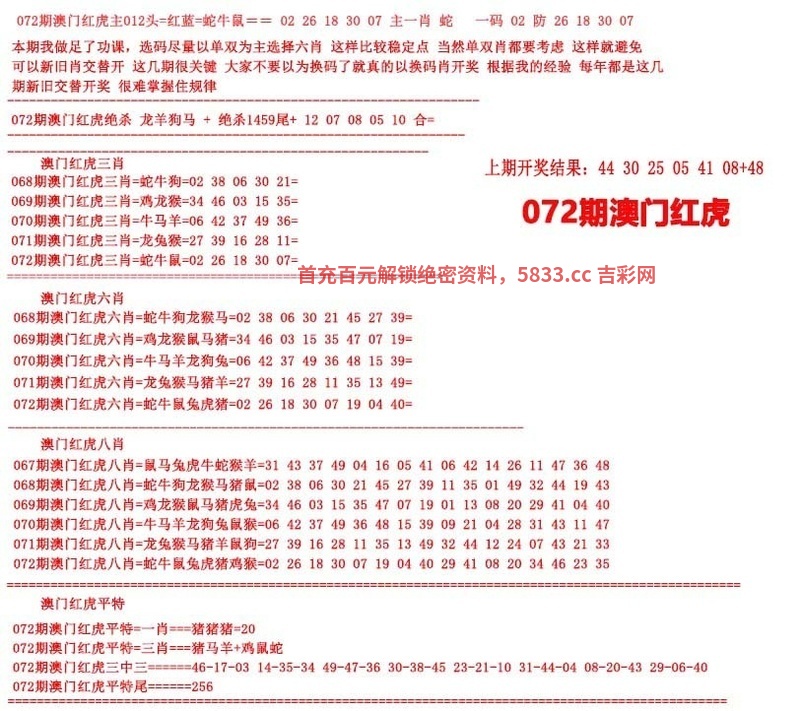 072期澳门红虎图
