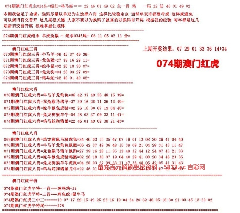 074期澳门红虎图