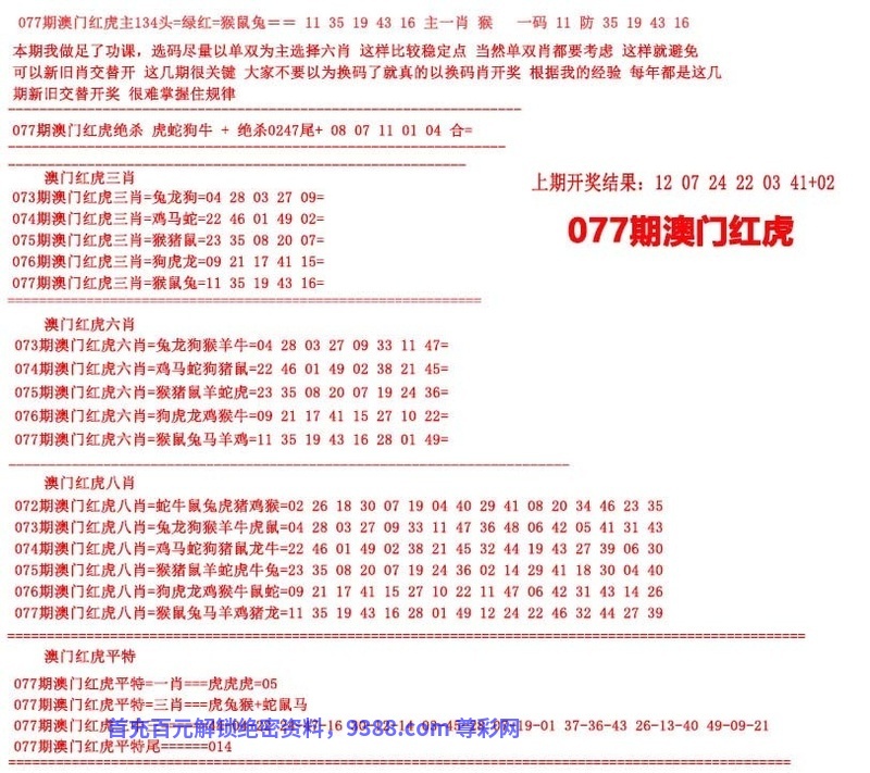 077期澳门红虎图