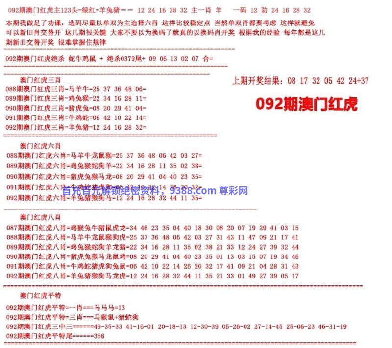 092期澳门红虎图