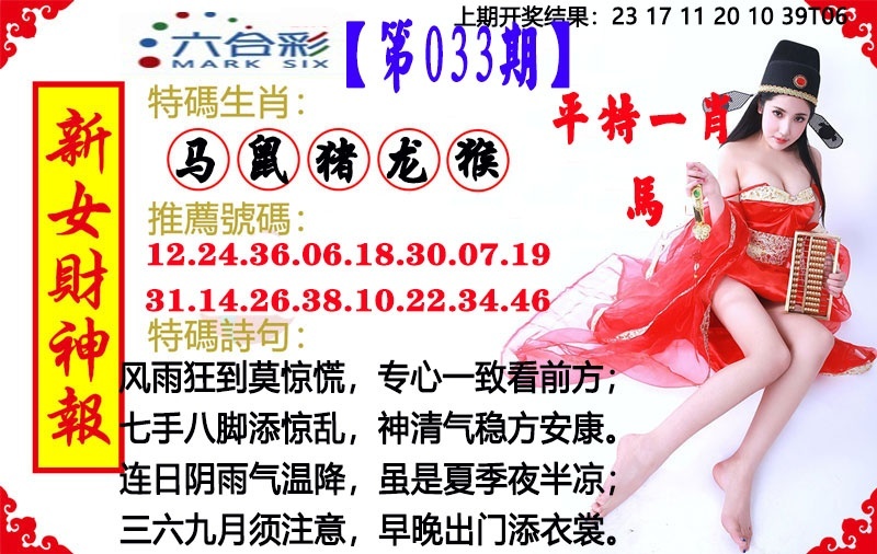 033期澳门女财神