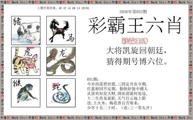 052期彩霸王六肖