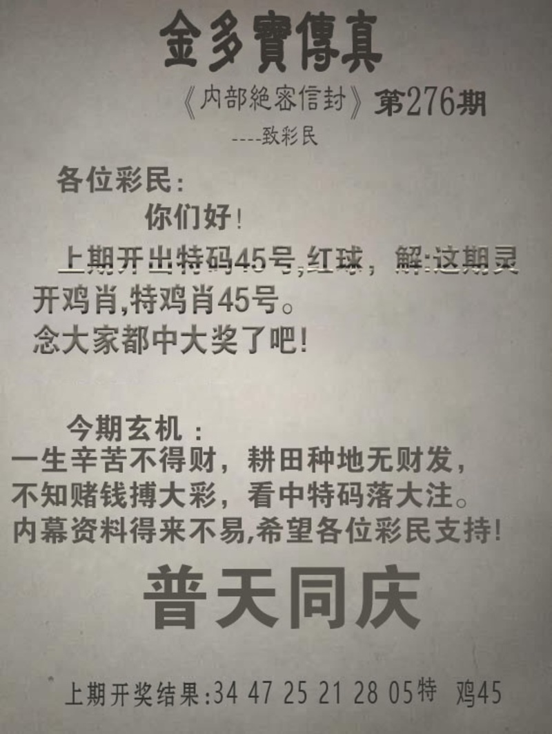 276期金多宝传真