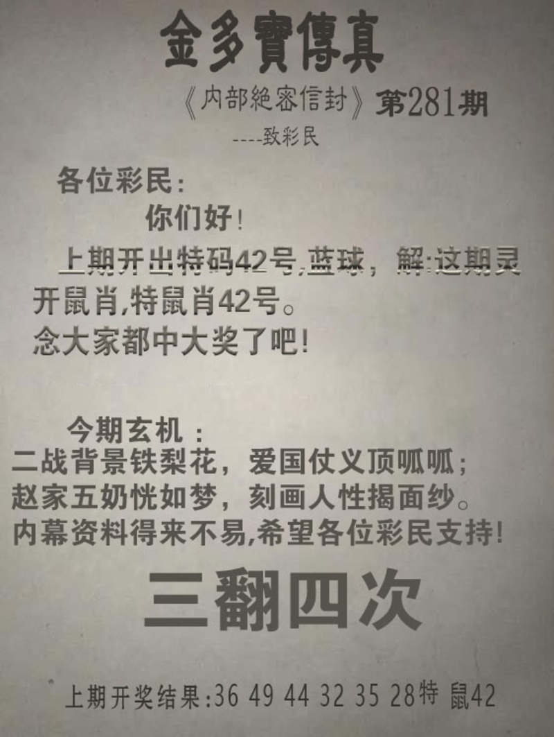 281期金多宝传真