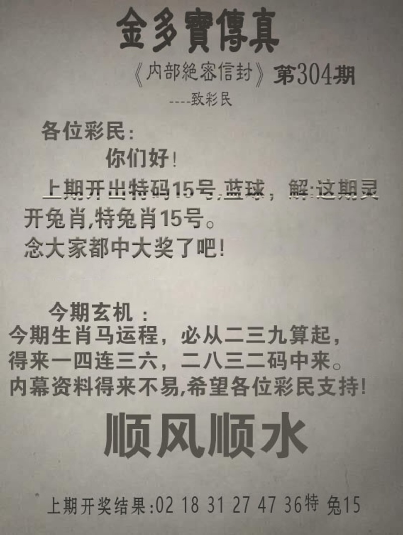 304期金多宝传真