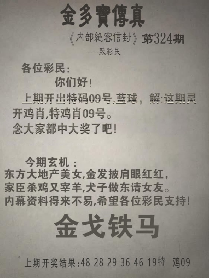 324期金多宝传真