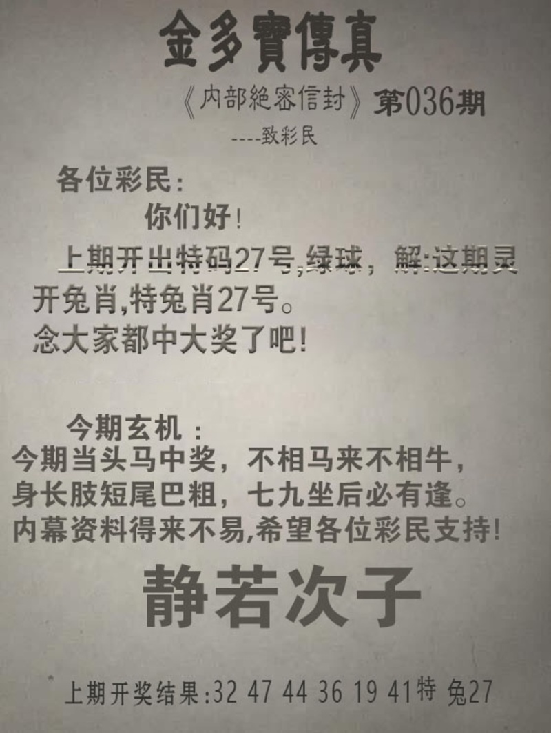 036期金多宝传真