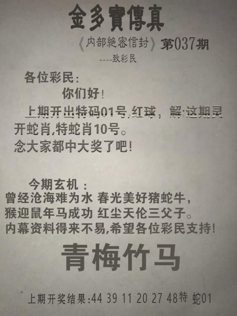 037期金多宝传真