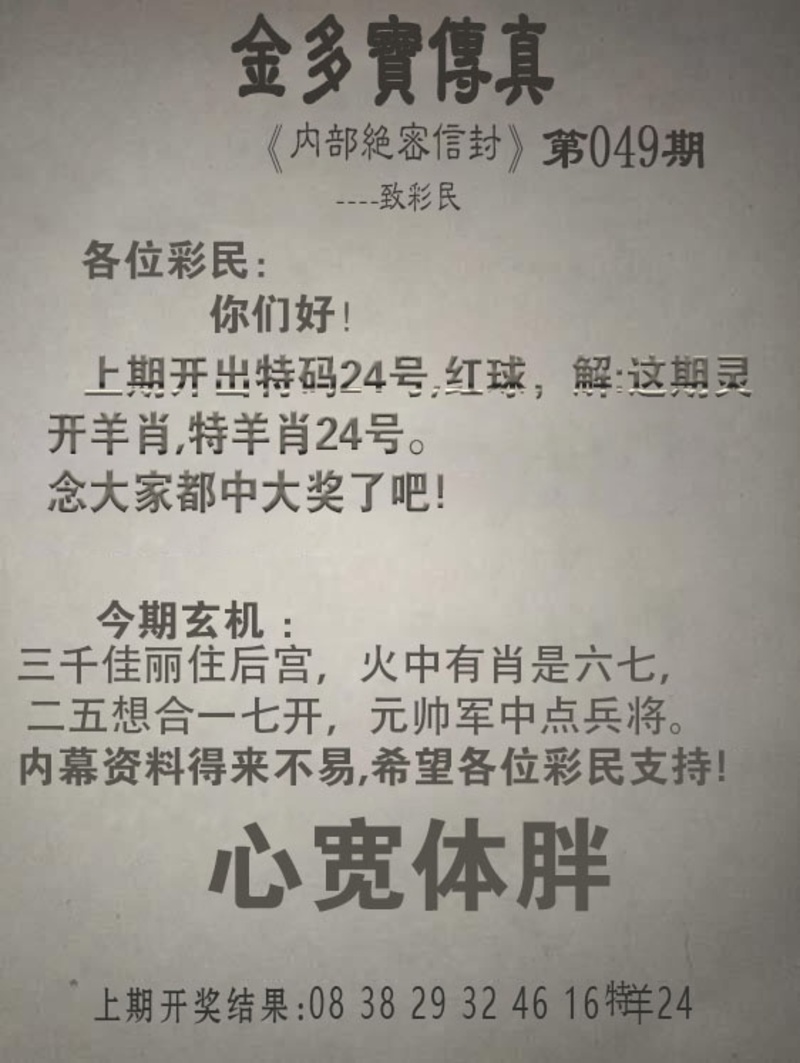 049期金多宝传真