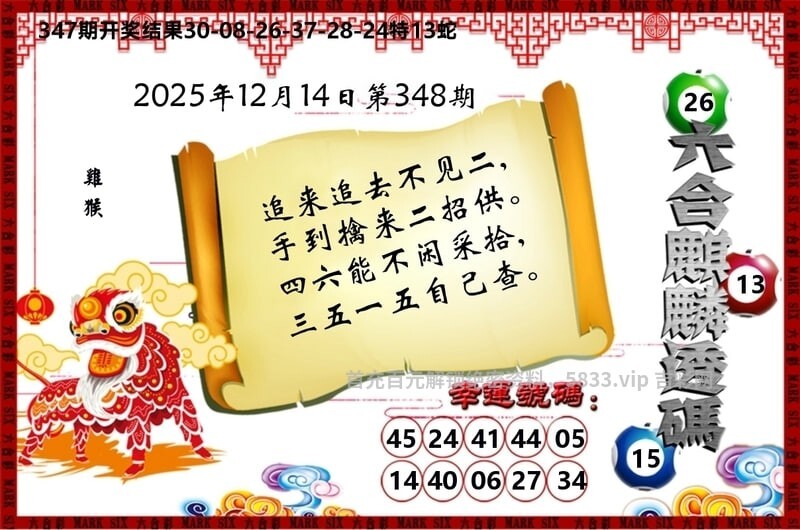 348期六麒麟透码