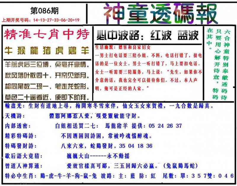 086期神童透码报
