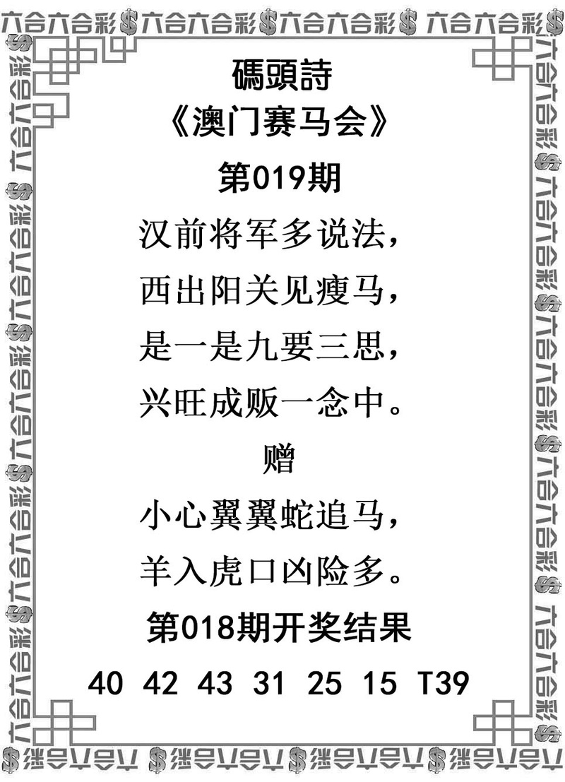 019期澳门赛马会